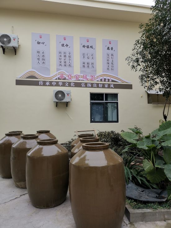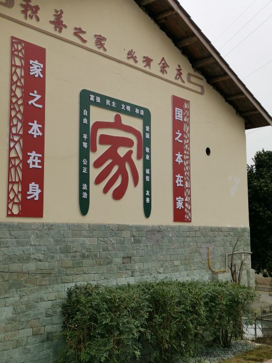 通過家風文化牌坊、長廊,走進共贏家風文化村大院,外墻左側墻畫突出“積善之家必有余慶”這一主題。一個大大的“家”字周圍圍繞著24字內容的社會主義核心價值觀。外墻右側墻畫是共贏家風文化大院相關簡介及規章制度,突出家風村建設和發展的六大宗旨,即共贏、共享、共富、共建、共治、共商。