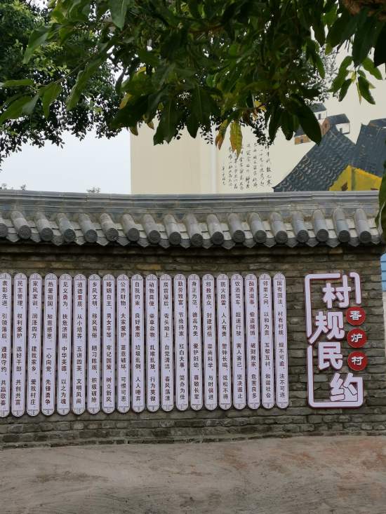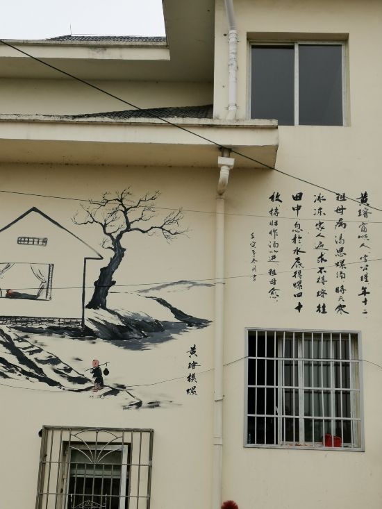 在大院內,建立有《千字文》《弟子規》等中國優秀傳統家風文化經典的藝術展示牌、家風傳承德字墻等家風傳承、家風氛圍營造牌匾,還設議事堂、活動場等。而在家風文化村大院內不少民居墻面上,呈現出不少關于家風詩詞、故事的手繪巨幅墻畫。行走其間,家風文化氛圍濃郁。