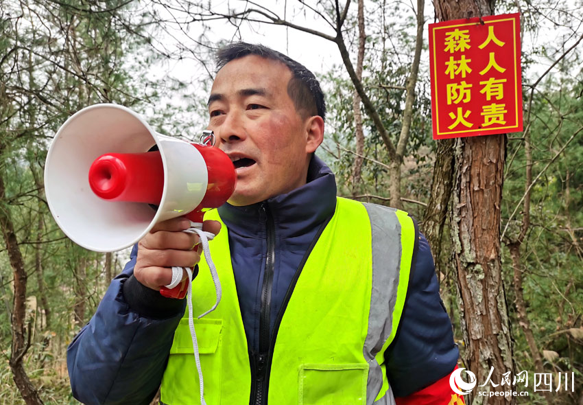“綠色家園是我家,森林防火靠大家……”農歷大年初四,四川省仁壽縣龍正鎮茨竹社區護林員張學華和往常一樣,帶上“小喇叭”和撲火工具,走進轄區內的山林間,提醒群眾注意防火。