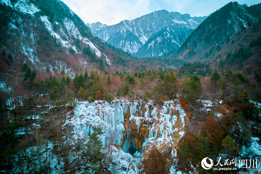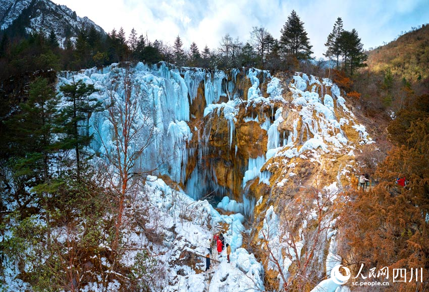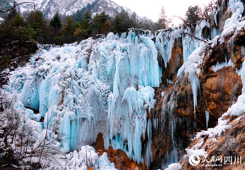 玉樹瓊花遍野開,雪山冰瀑入畫來。寒冬時節的一場降雪,讓綿陽市平武縣白馬藏族鄉亞者造祖村成了一個銀裝素裹的世界。往日流水潺潺的沙棘溝瀑布,變成晶瑩剔透的冰瀑。正值春節假期,游客們紛紛前往觀賞,領略大自然的神奇造化。