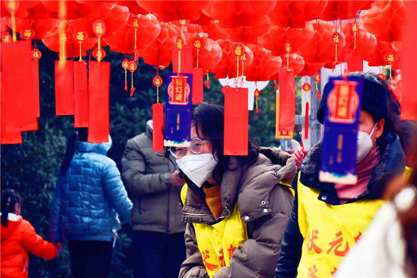 在山間的“燈謎競猜區”,火紅的燈籠和燈謎彩條迎風飄揚,給新春增添了紅紅火火的色彩,使往來市民切身感受到中華民族傳統文化的魅力。