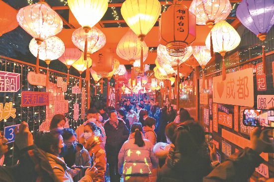 農歷正月十五是元宵佳節,是農歷新年的第一個月圓之夜,它承載著人們對新年美好愿望的開始。今年的元宵佳節延續著春節的“煙火氣”,夜游錦江、舞龍舞獅、變臉吐火、打鐵花舞火龍等多種多樣的傳統民俗文化表演,走進社區走上街頭,大街小巷掛燈披霓,夜色里的煙火成都處處美輪美奐,彰顯著這座千年都市的獨特文化底蘊。(成都日報錦觀新聞記者 胡大田 熊一凡 魏麟瀟 攝影報道)