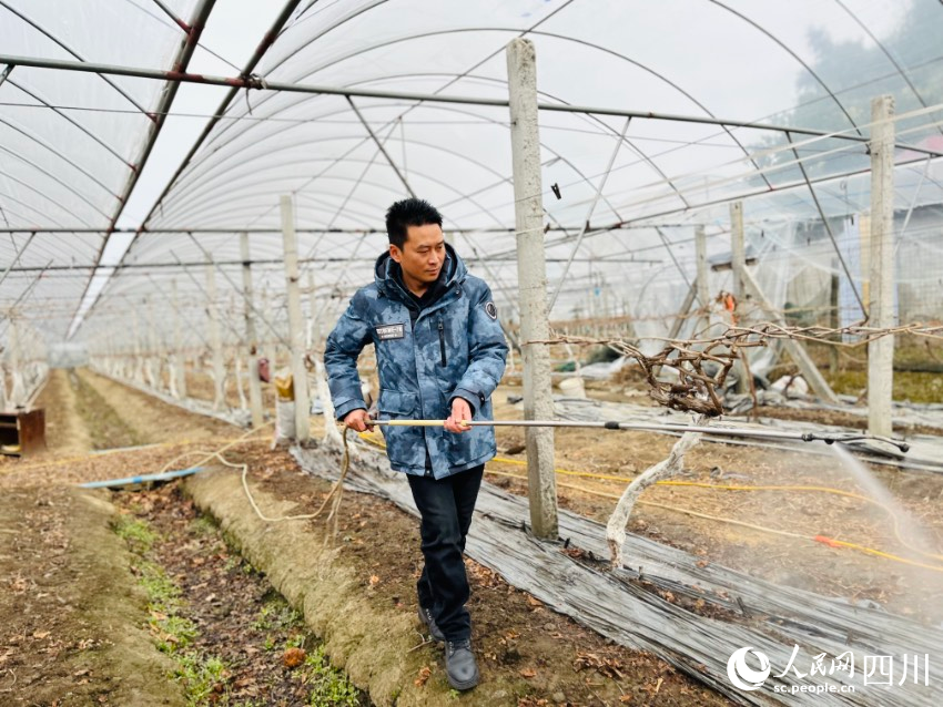 果園村種植戶張雄在葡萄園里忙碌。人民網 朱虹攝