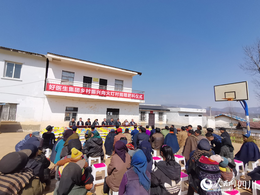 火燈村村委會前的廣場上,當地群眾紛紛圍坐,氣氛熱烈。好醫生集團連續第8年向村民捐贈肥料,以支持大家種植附子藥材。陽光下,200袋新型磷肥整齊排列。耿福能要求,工作人員要及時分肥到戶、施肥到地,促進今年的附子更好地增長。
