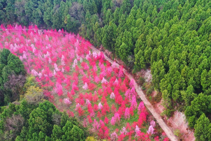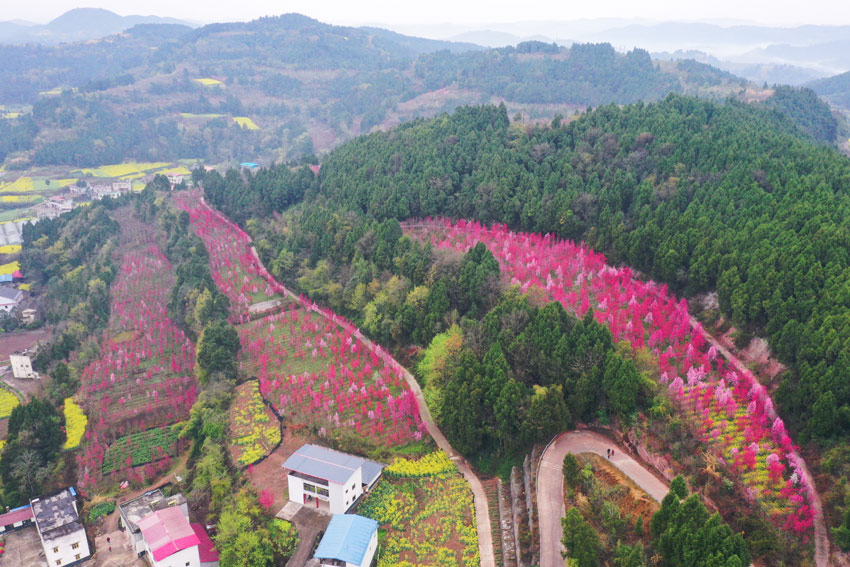 桃花叢中過,春風醉人心。中江縣委宣傳部供圖