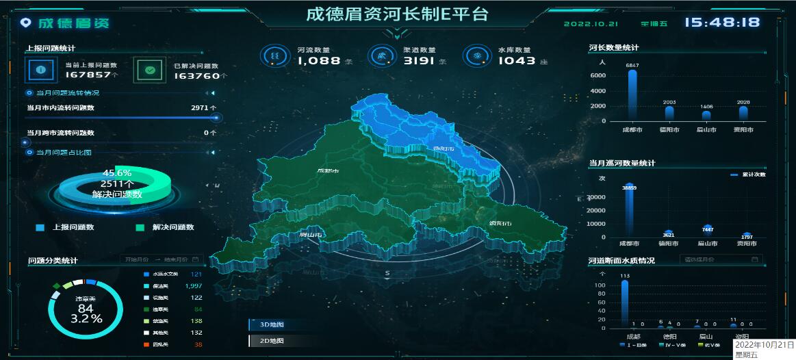 四是提升了“協同”能力。在全國首創建立都市圈水務協同智慧治理機制,建成投用成德眉資河長制E平臺,自運行以來,平臺注冊河長共計12252名,匯聚4市河長制基礎數據7.9萬條,4市各級河長總共巡河125萬余次,發現河湖水環境問題89643個,協調處置問題86840個。