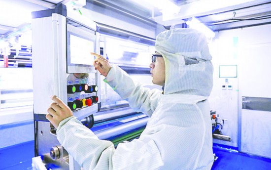 近日,在華鎣山經開區一家企業自動化生產車間里,工人正在查看自動化設備運轉情況。