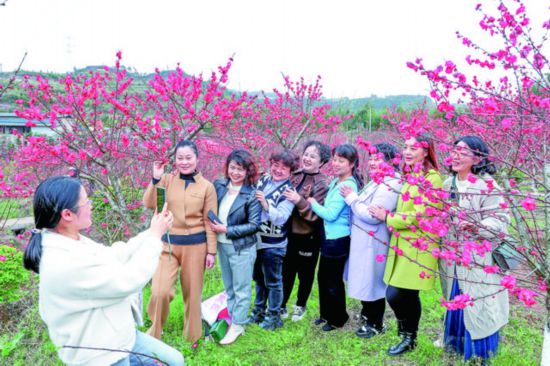 3月28日,廣安區大龍鎮自力村大地花谷景區內,300余畝桃花迎著春風競相綻放。連綿的桃花形成十里桃林,呈現出“滿樹和嬌爛漫紅,萬枝丹彩灼春融”的絢麗畫面。