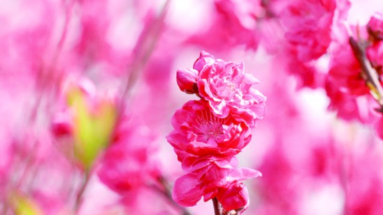 “現在正在盛開的是菊花桃,盛開時形似菊花,與常見的桃花花形不同,是觀賞桃類的珍貴品種?!贝蟮鼗ü染皡^負責人劉克林介紹,在這片300余畝的桃花園里,種有絳桃、菊花桃等6個品種的桃花,花期從3月上旬持續到4月初。