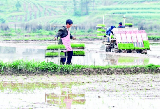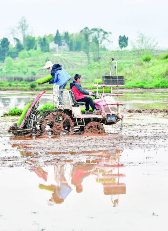 4月4日,在鄰水縣袁市鎮黃陵村,村民們正搶抓農時栽插秧苗,田間一片繁忙景象。 今年以來,鄰水縣切實加強糧食安全和惠農政策等宣傳,引導專業合作社、種糧大戶和農民加大人力、機械化投入力度,多育秧、育壯秧,不誤農時搶栽插,做到應種盡種、滿栽滿插,為糧食增產增收奠定基礎。