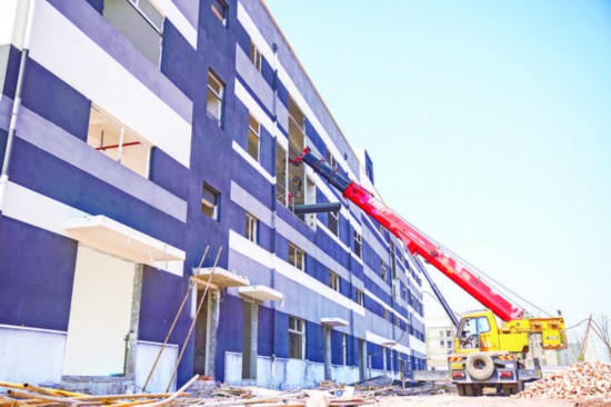 四川泰恩康特色化學原料藥項目正在進行鋼結構安裝作業。