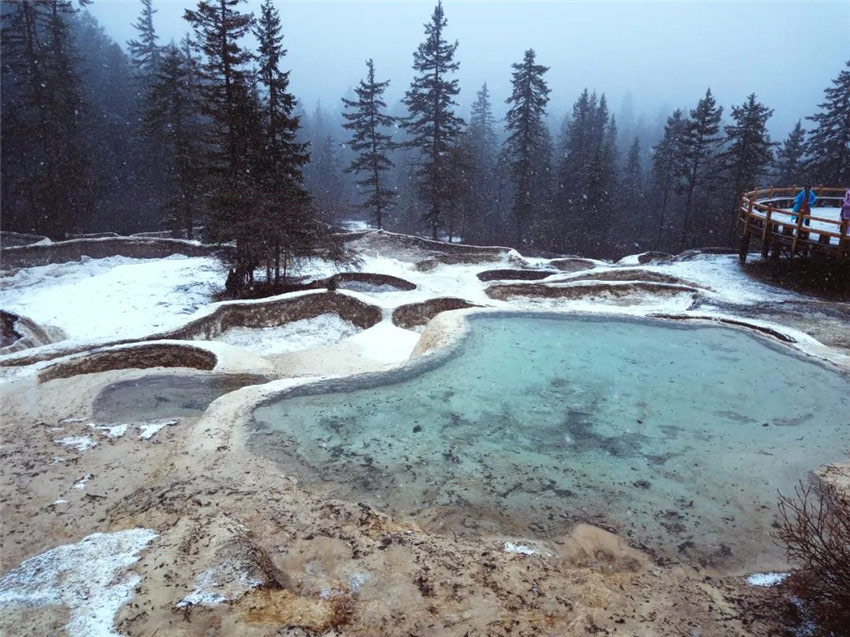 正是因為有四季的輪回,黃龍才有了自己豐水期的燦爛奪目,枯水期的靜謐蟄伏。冬春與夏秋的黃龍各含韻味,有著不同的美麗之處。