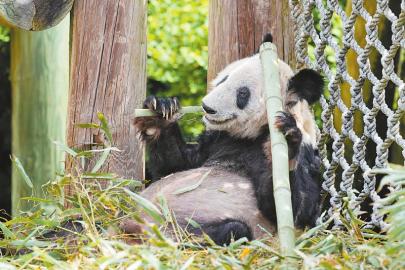 4月25日在美國田納西州孟菲斯動物園拍攝的大熊貓“丫丫”。 新華社記者 劉杰 攝