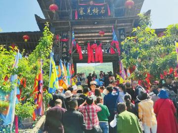 4月29日,石椅羌寨舉行進寨儀式歡迎游客。 景區供圖