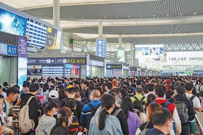 5月3日,全國鐵路迎來返程客流高峰,中國鐵路成都局集團公司在各大熱門旅游線路加開動車組112趟,以滿足出行需求。截至當天20時,該局發送旅客量171.3萬人次,較2021年、2019年同期分別增長8.7%和48%。在四川,截至當天18時,假期鐵路成都車站累計送客282.1萬人次,同比2019年增長超30%,其中成都東站累計送客量較2019年同期增長超50%。