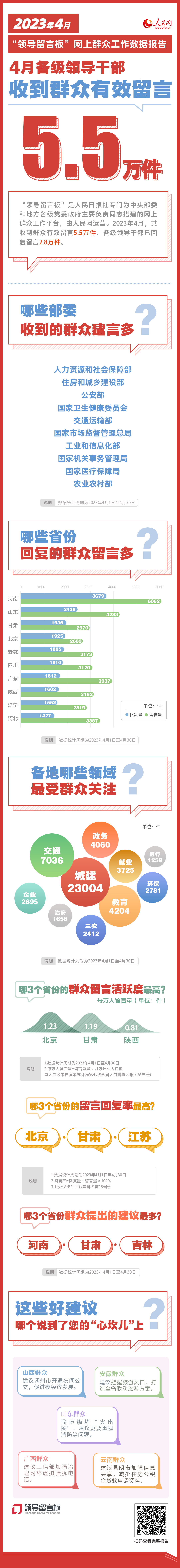 原標題:“領導留言板”月度數據報告:4月,各級領導干部收到群眾有效留言5.5萬件