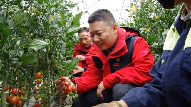 第六批工作隊隊員、掛職爐霍縣政府辦副主任劉云正在蝦拉沱高原現代農業產業園查看小番茄長勢情況。錦江區第六批對口支援工作隊供圖