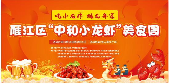 相約美麗雁江,共赴雁江區“中和小龍蝦”美食盛宴。2023年雁江區“中和小龍蝦”美食周活動將于6月16日至6月24日,在城東新區蜀人原鄉廣場(碧滿路)舉行?;鹄眲疟男↓埼r美食,奮楫逐浪的龍舟賽,動感搖滾的音樂表演,對抗激烈的籃球“村BA”,溫馨有趣的親子游樂……現場超多精彩內容迎接八方賓客。