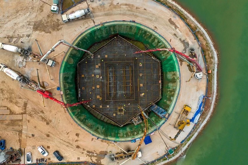 今年4月,成達萬高鐵嘉陵江特大橋9號主墩承臺澆鑄完成。成達萬公司供圖