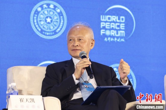 7月3日,中國前駐美大使崔天凱在北京參加第十一屆世界和平論壇時指出,中美要找到相互尊重的辦法來處理雙方的關系,“而不是誰要讓誰喜歡的問題”。 中新社記者 蔣啟明 攝