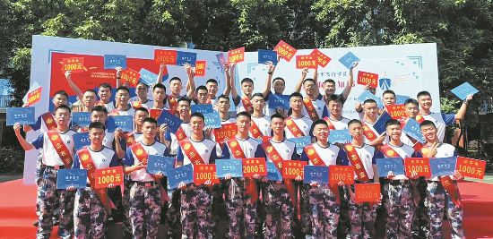 空軍航空大學畢業學長學姐“三級航天功勛獎章英雄航天員”葉光富、“全國三八婦女紅旗手、第十四屆全國人大代表”陳金蘭等人用視頻寄語的方式為學弟們送上祝?!,F場,招飛中心相關領導還向優秀畢業生發放獎學金。