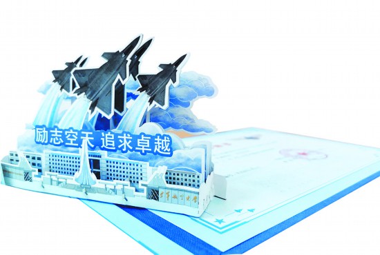 通知書頒發儀式前,每位學生攜手家長走過寓意夢想和成功的紅地毯,并在簽名墻上自己的照片旁留下了豪言壯語,親手觸摸代表空軍飛行員最高榮譽的空戰能手“金頭盔”和突擊能手“金飛鏢”,立下錚錚誓言。