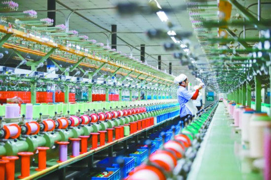 武勝縣安泰絲業有限責任公司生產車間內,工人開足馬力忙生產。