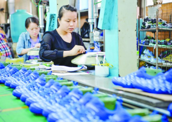 廣安市福輝鞋業有限公司員工在生產運動鞋。