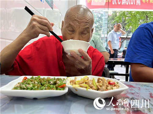 “老板,來份飯?!?月13日上午11時許,樂山市市中區通江街道柏楊社區黨群服務中心周邊的商戶和社區的老人年陸陸續續擁進“樂養小食堂”吃午餐。