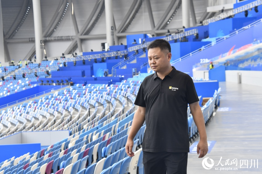 尹凌川是華潤置地建設事業部代建成渝工程管理副總監,全過程參與東安湖體育公園“一場三館”的建設,他還有個身份——成都大運會賽事保障開幕式工程館長。