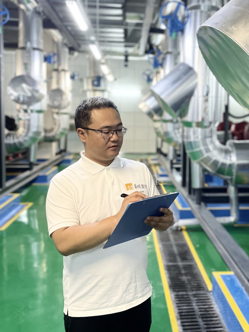 鐘磊正在巡視檢查記錄制冷機房運行數據。華潤置地供圖