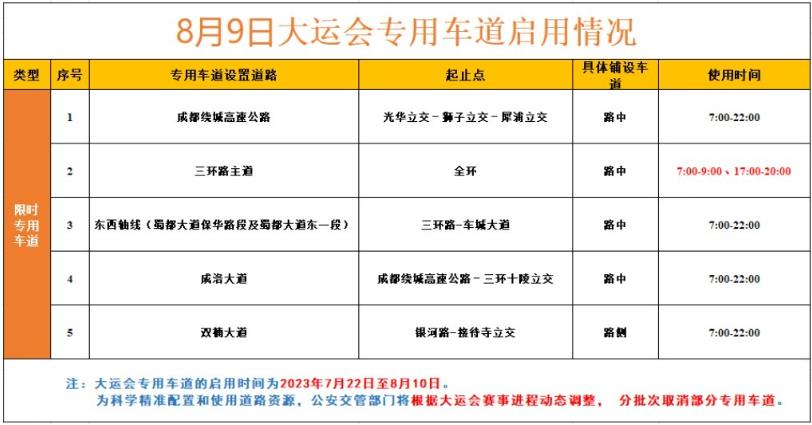 原標題:8月9日起 成都取消12條基于公交專用車道設置的大運會專用車道