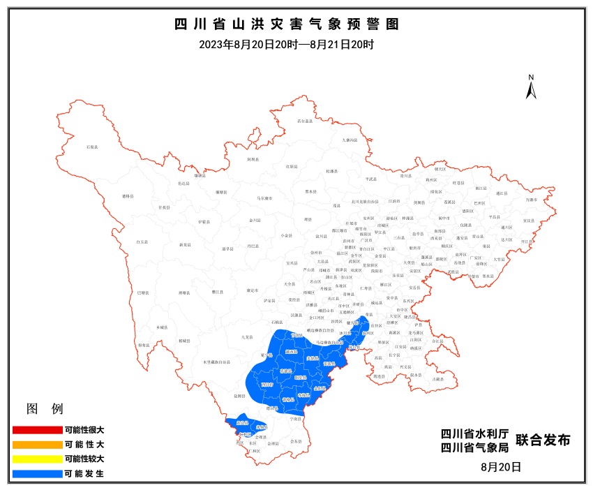 8月20日,四川省發布山洪災害氣象預警圖。四川省水利廳供圖