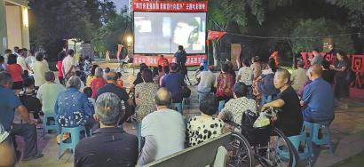 宜賓市“全民國防教育月”電影千場展映活動火熱開展。社區群眾聚精會神觀影《長空之王》。