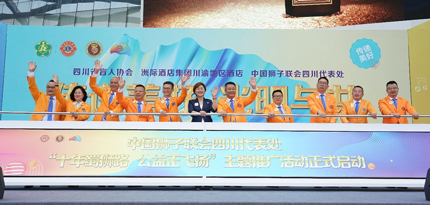 節目結束后,嘉賓們登臺共同剪彩,中國獅子聯會四川代表處“十年蜀獅路,公益正飛揚”蜀獅十年系列主題推廣活動正式啟動。
