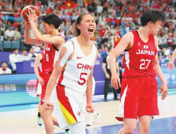 開局2分鐘,韓旭中距離跳投為中國隊拿下首分。上半場,中國隊以45∶40領先。進入下半場,日本隊合圍中國隊中鋒壓縮出手空間,持續緊咬比分。在最后一節比賽中,兩隊比分差距縮小,雙方一度戰平至72∶72。中國隊頂住壓力,在最后9秒,王思雨打入制勝一球,中國隊拿下冠軍。