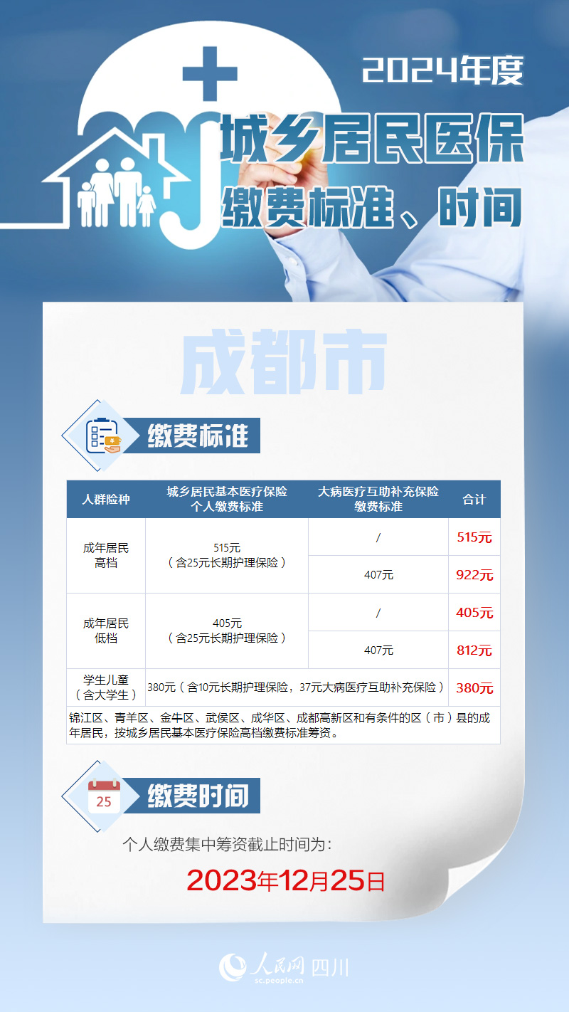 近期,四川各地啟動了2024年度城鄉居民基本醫療保險繳費工作,陸續公布了2024年度城鄉居民醫保個人繳費標準、截止時間、繳費方式,一起來看看吧!
