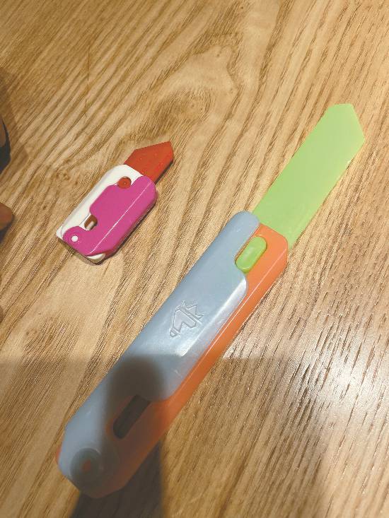 被冠以“解壓神器”的“蘿卜刀”究竟是什么?為了搞清楚這個問題,記者在金牛區某小學門口的文具店中購買了一大一小兩把“蘿卜刀”。記者注意到,“蘿卜刀”的外形和其名字一樣——形狀像蘿卜丁,通體塑料。據了解,“蘿卜刀”最初是由某視頻網站的一名博主在2022年6月所設計,并通過3D打印制作的一款玩具。
