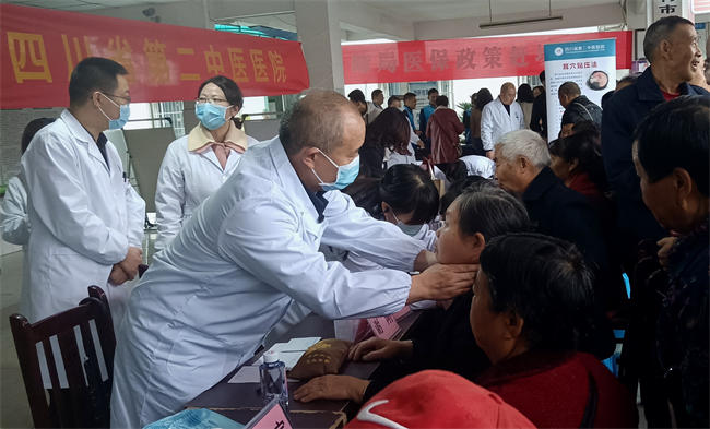 四川省第二中醫院院長謝剛在給群眾做診斷。九三學社四川省直工委供圖