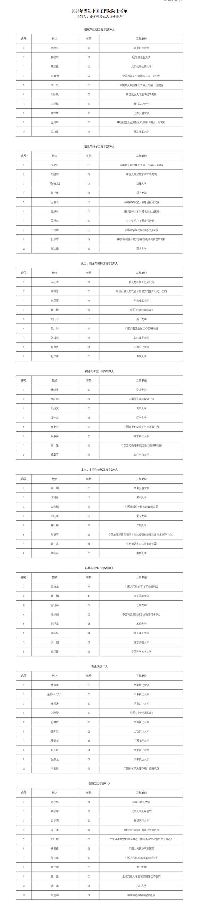 2023年兩院新增院士133人 四川有5人新當選中國工程院院士