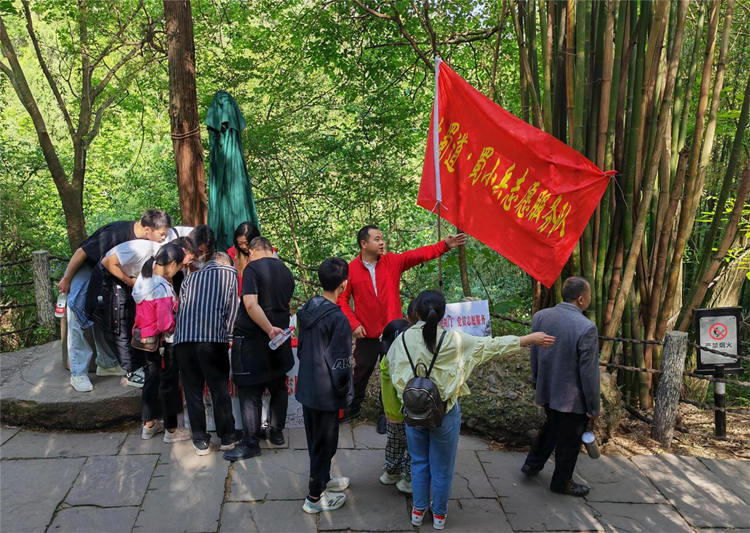 從廣元昭化到梓潼,從劍閣普安到閬中,蜀道蜿蜒三百里,劍門關旅游景區是川北唯一的國家AAAAA級景區,也是蜀道上的核心區,以劍門關為引領的景區、景點(農旅文化景點)近10個,近年來受到游客青睞,每年游客量在350萬人左右。每到節假日,這里游客翻倍增加,文明旅游志愿服務顯得尤為重要?!按笫竦馈な裥”蔽拿髀糜沃驹阜罩饕诜ǘü澕偃?、重要時段開展活動,為游客提供旅游咨詢、購票服務、文明引導、醫療健康、環境衛生、應急協助等10項系列志愿服務。