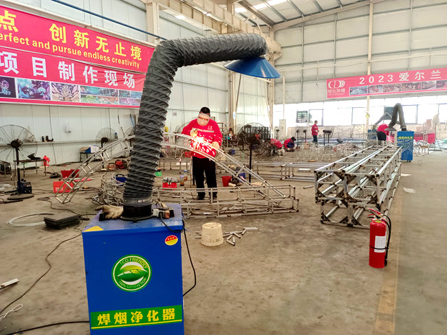 自貢彩燈企業2023年海外燈展燈組生產現場。燈彩集團供圖