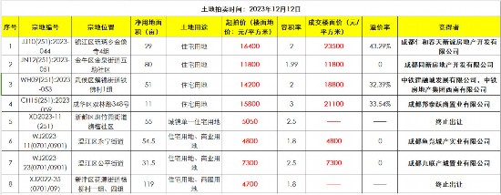 成都中心城區迎12月首次土拍 主城區2宗地成交樓面地價破2萬元/㎡