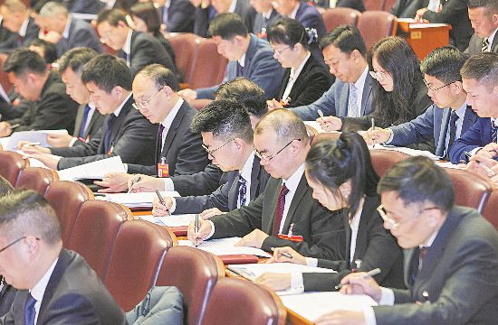 成都市十八屆人大二次會議昨日開幕,代表們認真聆聽報告