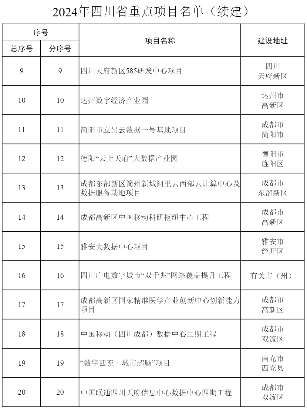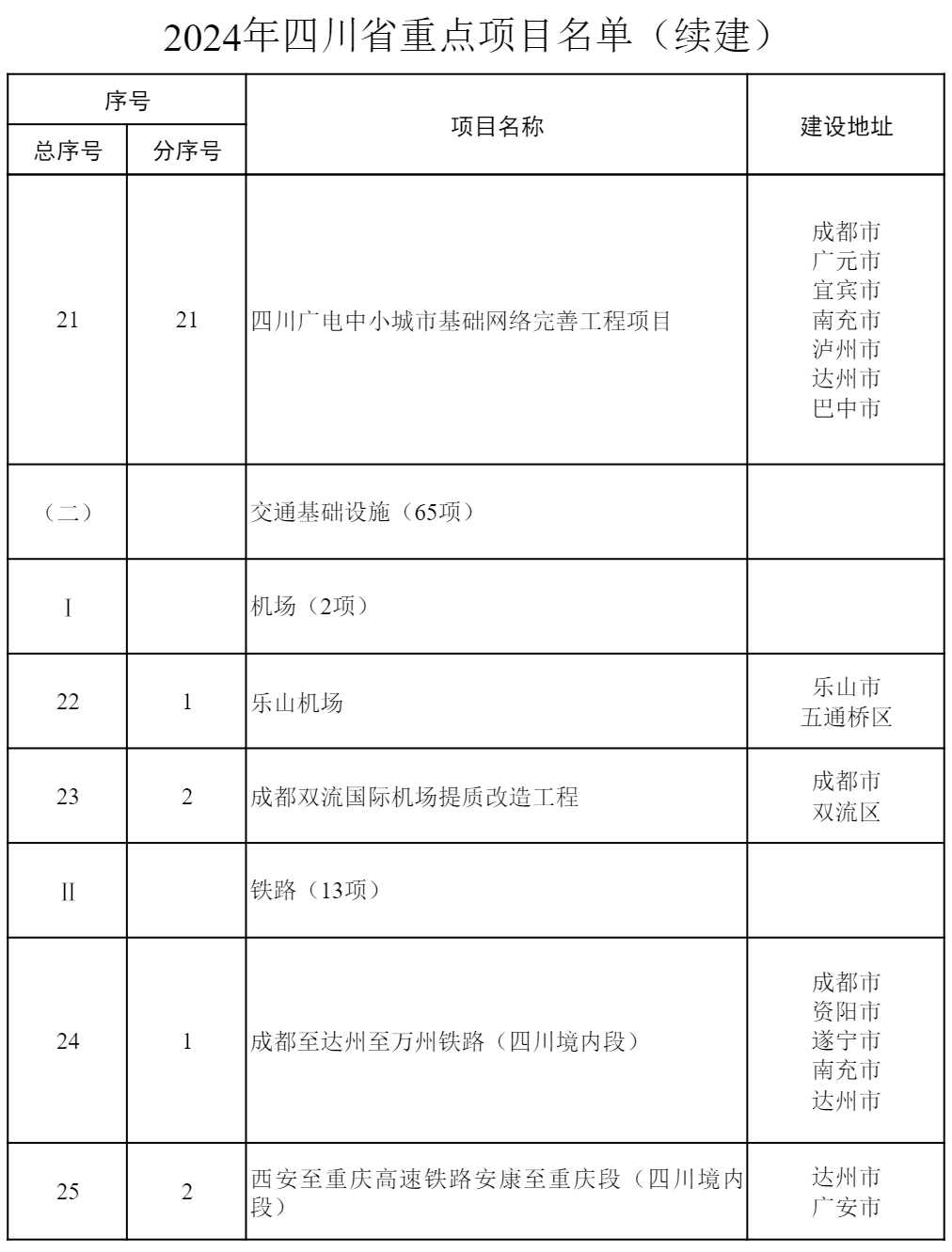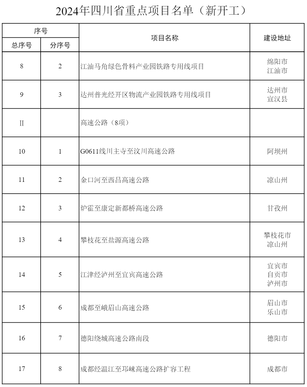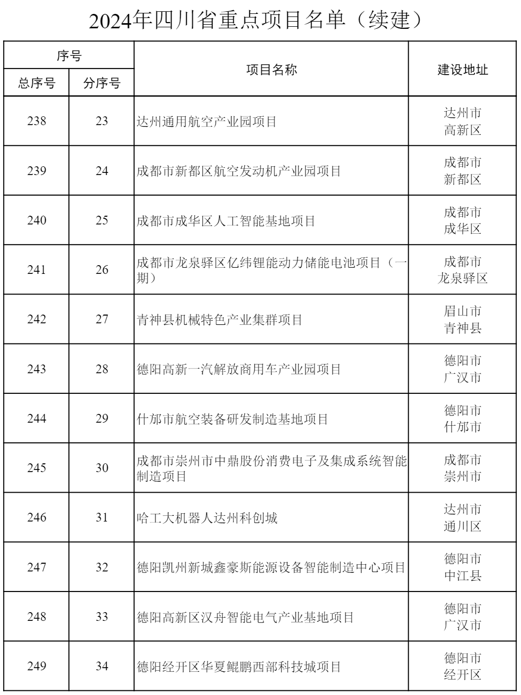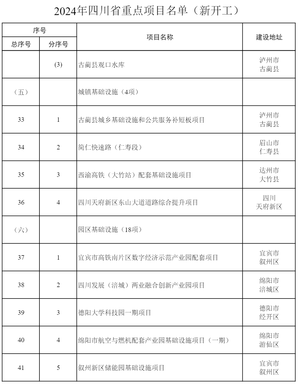 2024年四川省重點項目公布 共700個