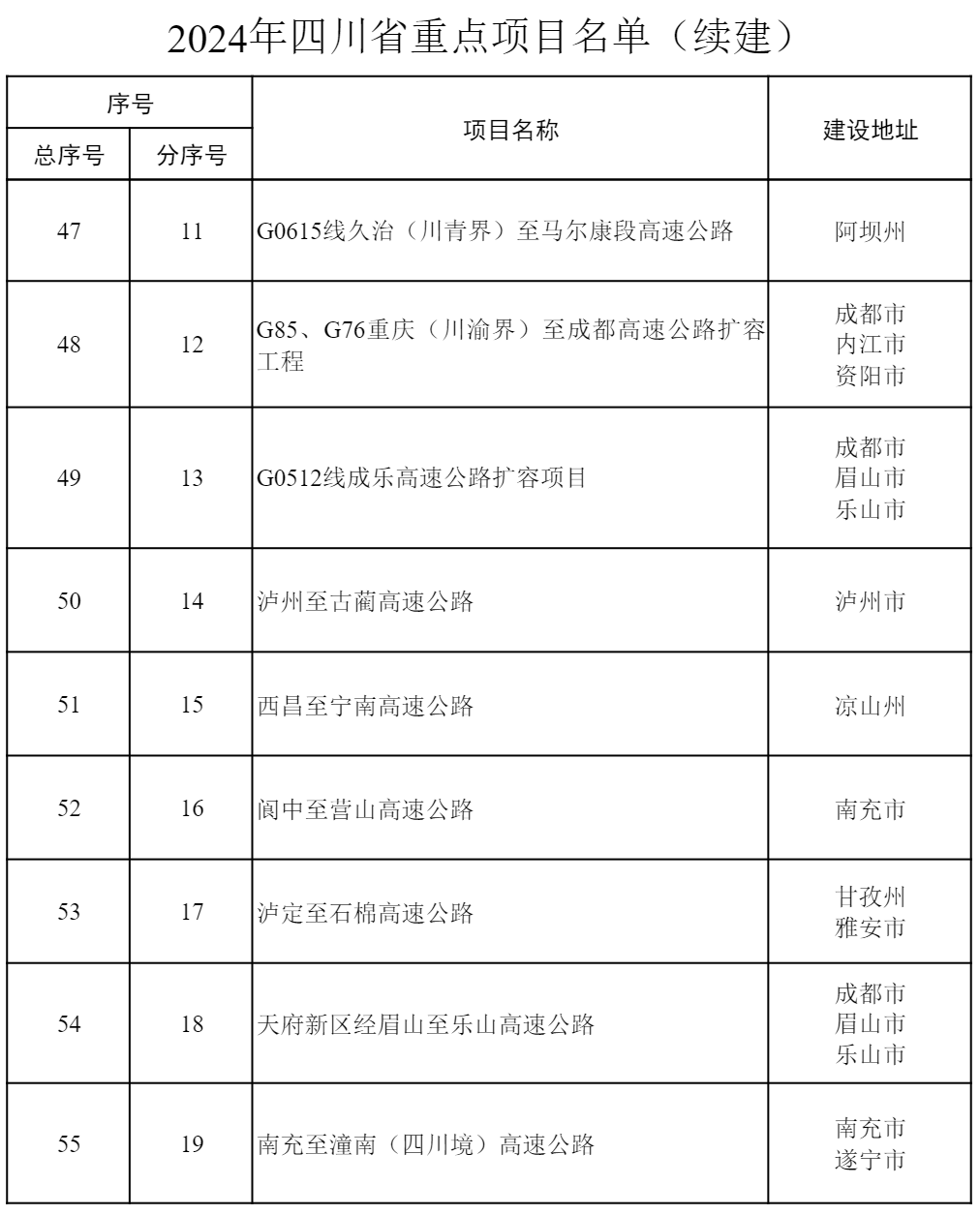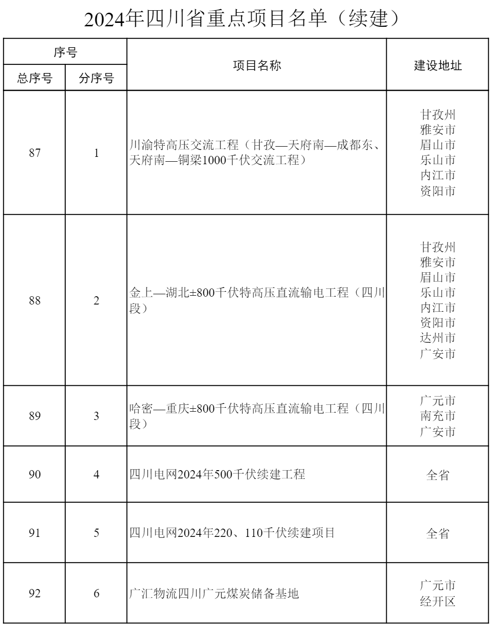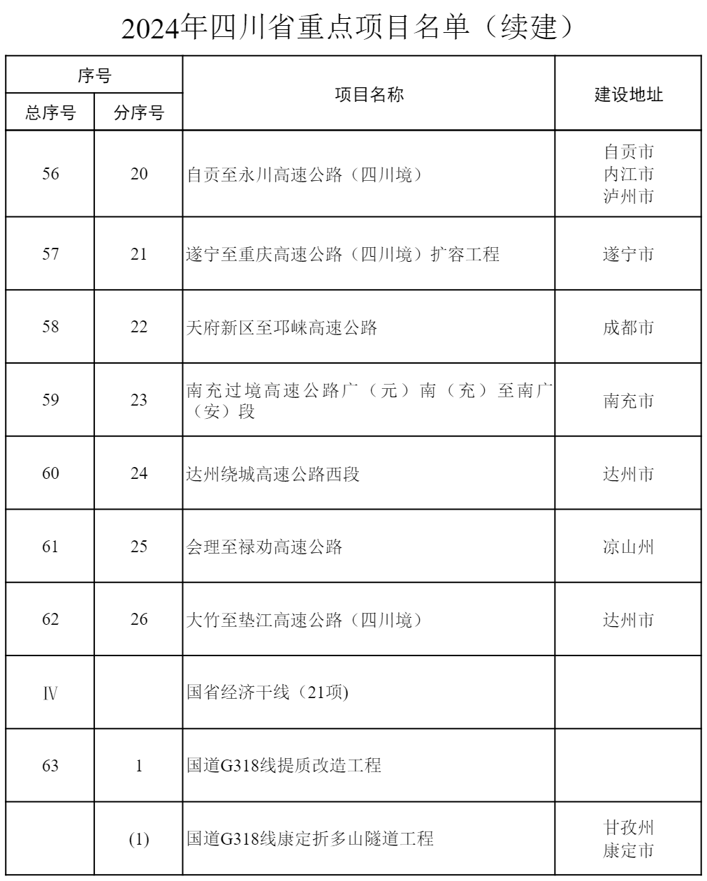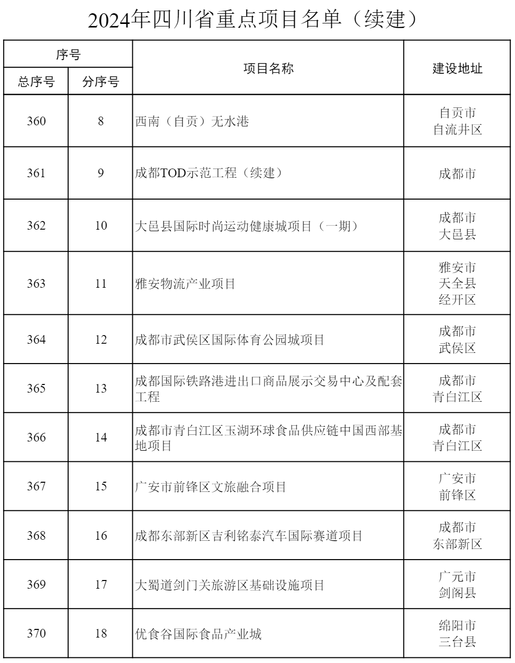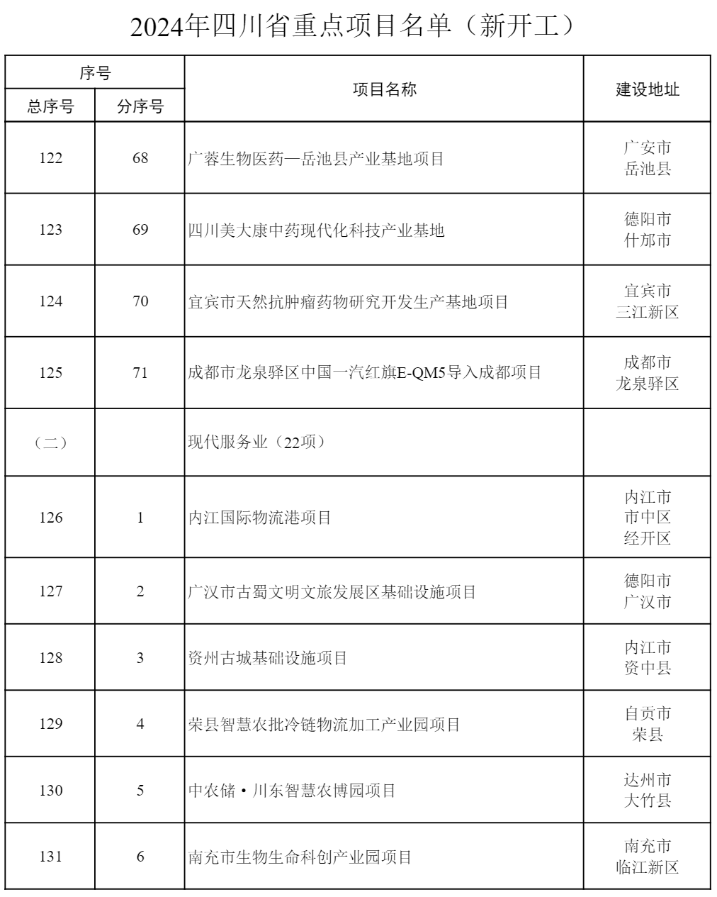 2024年四川省重點項目公布 共700個