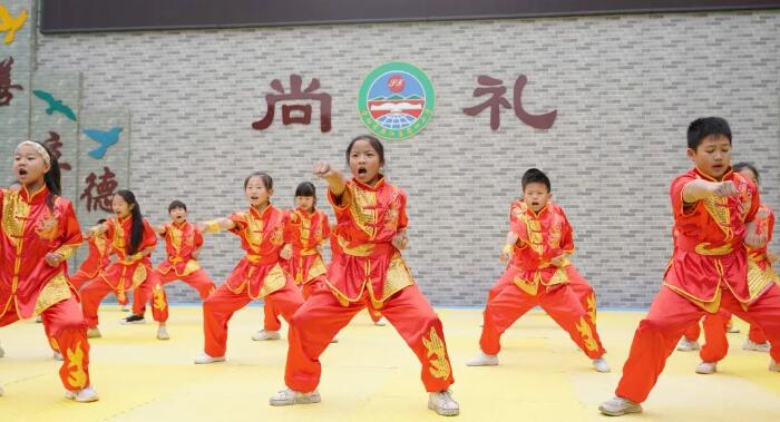 除了資陽中學外,雁江四小于2020年9月與內江師范學院“教育部中華優秀傳統文化峨眉武術傳承基地”簽署三方合作協議,掛牌“教育部中華優秀傳統文化峨眉武術傳承基地”“四川峨眉武術文化社科普及基地”。自掛牌以來,學校堅持“五育并舉,融合育人”的辦學理念,推動中華優秀傳統文化思想進校本教材,打造學校特色課程,設立了全體師生參與的“峨眉武術課間操”“峨眉武術基本套路系列動作”,以及由特長教師指導的“峨眉武術班級特色表演操”等特色武術技術課程,在川南五市武術散打邀請賽中,獲得男子少年組、女子少年組第一名,獲團體一等獎……雁江四小武術操。