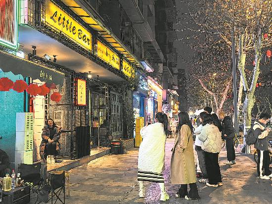2月5日晚,記者在玉林西路看到,冬夜的寒意并沒有驅散人們聽音樂、聚會的熱情。路邊小巷、酒館、餐酒吧,多元化的音樂體驗讓音樂與成都人的生活親密無間。