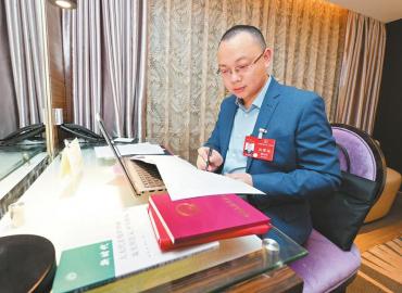 3月3日,唐利軍代表在駐地修改建議。川報集團特派記者 歐陽杰 攝