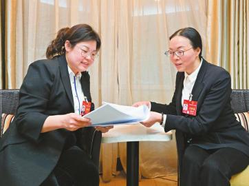 3月3日,李慧代表(左)和楊心平代表在駐地閱讀會議材料,為上會作準備。川報集團特派記者 歐陽杰 攝